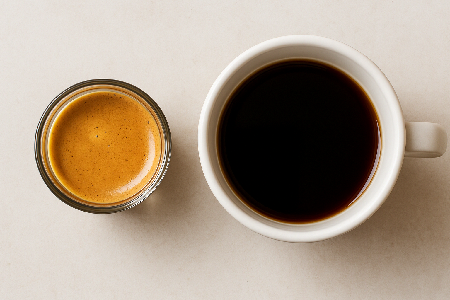 | میزان کافئین | در هر واحد (شات) کمتر، اما در هر میلیلیتر بیشتر | در هر فنجان بیشتر، اما در هر میلیلیتر کمتر |