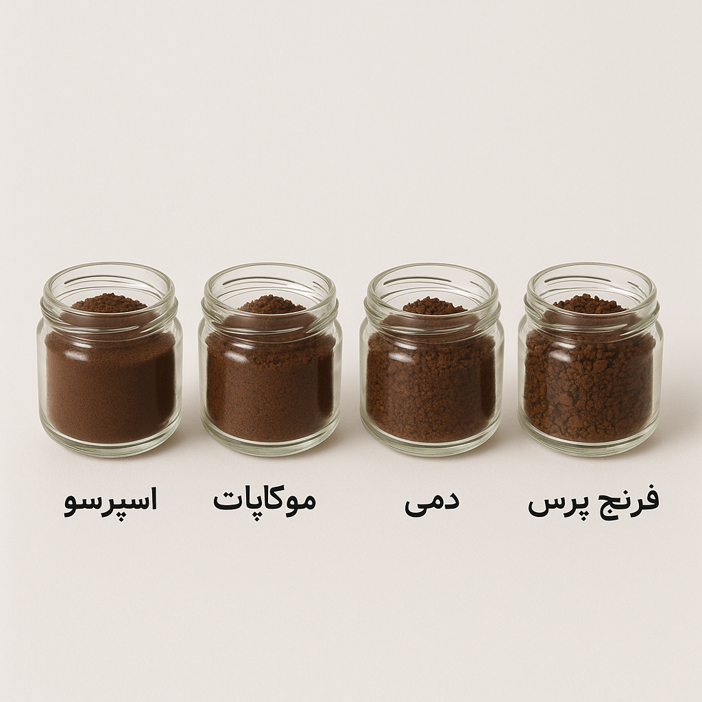 - قهوههای دمی (V60, کمکس): نیاز به آسیاب متوسط (Medium) دارند.